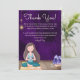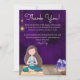 Este hermoso diseño de tarjeta de agradecimiento presenta a una niña practicando yoga y meditación en una hermosa alfombra junto a cristales en una habitación con una hermosa pared de color púrpura profundo que recuerda al chakra Corona (Sahasrara). Un mensaje de agradecimiento consciente está en la tarjeta que se puede personalizar con su propio texto personalizado y firma.