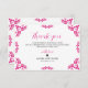 This Mexican Talavera Pink Floral Minimalist Wedding Thank You Card design features a minimalist approach with delicate, symmetrical pink floral motifs placed in each corner and along the edges. The small, leaf-like shapes create a sense of movement while maintaining an airy, open space in the center, allowing for ample text placement. The simplicity and elegance of the pattern evoke traditional Talavera tiles, giving the design a classic Mexican artisanal feel.