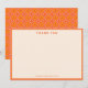 This wedding thank you note features a mid-century modern geometric pattern border in pink and orange with "THANK YOU" at top and couple's names at bottom. For wedding thank you notes, bridal shower appreciation, or couple stationery.