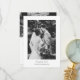 Minimalistic Black & White 2-Photo Wedding Thank You Card. Customize this modern and elegant, black and white wedding thank you card with bride and groom names, your personalized thank you message, and two wedding photos of your choice.