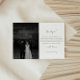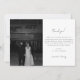 Minimalistic Black & White Script Wedding Photo Thank You Card. Customize with bride and groom names in elegant script lettering, your personalized thank you message, and a favorite wedding photo.