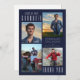 Diseño clásico, moderno, azul marino y blanco con texto elegante y un collage de fotos de 4 fotos de tu graduado. La parte posterior tiene un campo de texto opcional en azul marino para incluir un mensaje de agradecimiento preimpreso o borrar el texto de ejemplo para dejar el área en blanco para notas de apreciación manuscritas. CAMBIO DE COLOR: Cambie el fondo y el color del texto haciendo clic en PERSONALIZAR MÁS. PUNTO DE FOTO: Elija una foto con el sujeto en el medio y/o pre-recortar en una forma similar como se muestra ANTES de subir y utilice la herramienta CROP para ajustar la imagen dentro del área de plantilla. ASISTENCIA: Para obtener ayuda con la modificación/personalización del diseño, el cambio de color, la transferencia del diseño a otro producto o si desea coordinar elementos, póngase en contacto con el diseñador ANTES DE PEDIDOS a través de la ficha MENSAJE de charla de Zazzle o envíe un correo electrónico a makeitaboutyoustore@gmail.com.