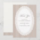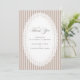 Elegant wedding thank you card featuring mocha brown French stripes and a delicate lace doily oval frame in a timeless neutral ivory and mocha palette. A refined, minimalist design perfect for classic, vintage, and neutral wedding stationery suites.