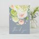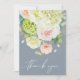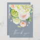 Hermosa acuarela de hortensias blancas y verdes con rosas rosados y crema, margaritas, flores pequeñas y hojas aparecen en la parte delantera de estos polvorientos bodas azules tarjetas de agradecimiento. Tu foto y mensaje están impresos en la parte posterior. COINCIDIENDO elementos de nuestra colección.