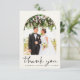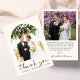 boda de crema clara de moda: tarjeta de agradecimiento que incluye tu foto en un marco de arco, "gracias" en un guión moderno y elegante, y tus nombres y fecha de boda. En la parte posterior, agregue una foto adicional, personalice su mensaje de agradecimiento y agregue sus nombres en un script tipo firma.