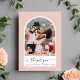 Tarjeta de agradecimiento de boda minimalista y elegante para recién casados que presenta su foto en un marco de imagen abovedado sobre un fondo rosa rubor, "gracias" en un guión elegante y su nombre y fecha boda de Mr & Mrs en una tipografía moderna y sencilla. Al revés, personaliza un mensaje de agradecimiento y agrega tus primeros nombres como firma.