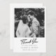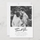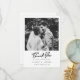 Celebra tu amor y expresa tu más sincera gratitud con nuestra tarjeta de agradecimiento de Boda de firma con la mano negra de nuestra Moda. Con una impresionante foto personalizado de estilo polaroide en la parte delantera, esta tarjeta proporciona el lienzo perfecto para su mensaje personalizado. La elegante letra a mano "Gracias" en negro en negrita, combinada con el nombre de su pareja, la fecha boda y la ubicación, agrega un toque sofisticado que complementa la tipografía moderna de su texto personalizado. Este diseño transforma tus momentos especiales en un querido keepsake. En la parte trasera, la tarjeta muestra un mensaje de gratitud personalizado en escritura negra y tipografía moderna contra un fondo blanco prístino, equilibrando estilos clásicos y contemporáneos. Esta carta, cuidadosamente hecha, no sólo agradece a sus seres queridos y a los invitados bodas, sino que también captura la esencia de su historia de amor. Eleva tus notas de agradecimiento con una tarjeta que combina personalización, elegancia y encanto intemporal. Pida la tarjeta de agradecimiento del Boda de la firma con la mano negra de la Moda para que su gesto de agradecimiento sea tan memorable como su día especial.