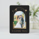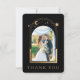 Moda mística Black Gold Star Moon Celestial Space Photo Boda Gracias a las tarjetas presenta el sol, la luna y las estrellas con un marco dorado que rodea tu foto favorita sobre un fondo negro. Al contrario, añada el mensaje de agradecimiento de su personalizado y una imagen adicional. Personalice editando el texto en los cuadros de texto proporcionados y agregando sus fotos favoritas. FOTO TIP: céntrate tu foto antes de subir a Zazzle. Diseñado por ©Evco Studio www.zazzle.com/store/evcostudio