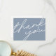 Boda mínimo moderno Gracias tarjeta en azul y blanco con caligrafía manuscrita. Personalizar con tu propio mensaje en la parte posterior o borra el texto de la parte posterior y agrega una nota manuscrita.