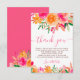 Moderna moda de color de agua floral giratoria giratoria de novia ducha de agradecimiento con naranja brillante, melocotón, flores rosadas y verdes ramo y elegante letra de guión.