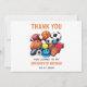 Di gracias de manera deportiva con esta moderna tarjeta de agradecimiento para el primer cumpleaños con tema de deportes All Star! Con diseños divertidos que incluyen balones de baloncesto, fútbol, fútbol americano y béisbol, es la forma perfecta de agradecer a los invitados por celebrar el gran día de tu pequeño MVP. Con espacio para escribir un mensaje personal, esta tarjeta de alta calidad añade un toque reflexivo y encantador a tu fiesta. Ideal para cumpleaños con tema de deportes, combina perfectamente con decoraciones y detalles que hacen juego. Ya sea entregada en mano o enviada por correo, es un recuerdo ganador que tus seres queridos apreciarán. Celebra con gratitud y estilo: el final perfecto para un divertido primer cumpleaños.