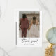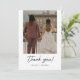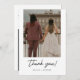 Modern Elegant Script 2-Photo Wedding Thank You Card. Customize this minimalistic and modern thank you card with two of your favorite wedding photos, bride and groom names, and a personalized thank you message.