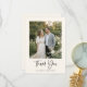 This folded black and white cream thank you note card features a favorite wedding photo paired with modern script lettering and the couple’s names for a simple, personal way to thank guests. The clean layout highlights your photo while creating a timeless keepsake from your wedding celebration. It’s perfect for thanking friends and family for their gifts, support, and for sharing your special day. A beautiful choice for newlyweds sending heartfelt notes after the wedding.