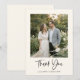 Tarjeta De Agradecimiento Modern Elegant Script Black Ivory Photo Wedding