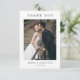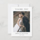 This elegant wedding thank you card features refined calligraphy and modern typography in a clean, minimalist layout. The delicate botanical crest monogram adds a timeless romantic touch while maintaining a chic and sophisticated style. Designed with a beautiful photo section, this card allows you to share a special moment while expressing gratitude to your guests. Perfect for modern, classic, rustic, or formal celebrations, this stylish thank you card completes your wedding stationery suite with a personal and meaningful touch.