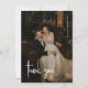 Modern Minimalistic Script Full Photo Wedding Thank You Card. Customize with a favorite wedding photo, bride and groom names, and your wedding date on the front, and add your personalized thank you message on the back.