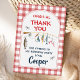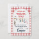 Modern Red Gingham Ofishally One 1st Birthday Thank You Card