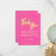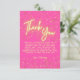 Tarjeta De Agradecimiento Moderna Girly Hot Pink Neon Glow Gracias Script