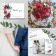 Elementos: acuarela floral elementos: rosas, peonías, eucalipto verde, follaje. Fuentes serias con acentos de escritura animados Colores: burdeos, marrón, marsala, frambuesa, arándano, morera, rosa, rubor, melocotón, azul polvoriento, verde, azul azul azul marino, azul pizarra. Temas: moderno, floral, botánico, contemporáneo, moda, clásico, jardín, simple, boho, campo, viñedo, bodega. Colección: Moderna colección de Bodas Rubor Floral Burgundy Navy. Tipo de producto: Nota de agradecimiento
