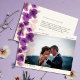 Unas ramas de orquídeas violetas, dibujadas a mano en acuarela digital y un estilo relajado y expresivo, con una decoración espeluznante que recuerda a un ramo boda, crean una carta de agradecimiento boda moderna, sofisticada, elegante y de moda. El elegante guión caligráfico, en tonos dorados, hace que este diseño elegante sea aún más elegante.