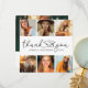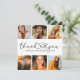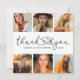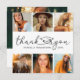 Simple graduación gracias tarjetas con fondo blanco, fotos del grado, las palabras "gracias" en un elegante tipo de letra de guión que incorpora un gorro de mortero, el nombre de los graduados, la escuela, el año y una nota de agradecimiento personalizada.