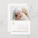 Modern Minimal Gold Cross Baptism Gracias tarjeta con tipografía y foto simples. Haga clic en el botón de edición para personalizar este diseño con sus detalles.