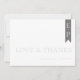 Tarjeta de agradecimiento de boda moderna contemporánea en blanco y negro. El diseño tiene Amor y agradecimiento escrito en fuente negra elegante junto con los nombres de los recién casados en un fondo blanco. Esta tarjeta es parte de una colección. Personalízala cambiando los nombres de la novia y el novio y la fecha de la boda. Para cualquier personalización adicional, no dude en contactarme en mypaperlove2021@gmail.com