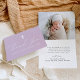 Simple y elegante tarjeta de agradecimiento del Bautismo con una cruz en el frente con "Gracias" mostrada en un guión casual de caligrafía blanca con un fondo morado claro. Personalice la parte delantera de la tarjeta de agradecimiento del Bautismo púrpura claro con el nombre de su hijo. El interior de la tarjeta plegada de agradecimiento muestra una foto horizontal con el mensaje que se muestra a continuación. Este diseño funciona muy bien para los bautismos chicas.