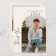 Una tarjeta de graduación de Gracias que presenta un guión moderno y moderno de caligrafía escrita a mano contra un fondo beige neutro con espacio para insertar la foto de su elección. Tiene la opción de personalizar fácilmente con su propio mensaje, nombre y detalles. Una manera pensante y memorable de expresar su gratitud a la familia y amigos, mentores y profesores.