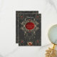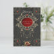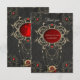 Momentos dorados de amor. El diseño desprende una elegancia oscura que llama la atención inmediatamente. Tiene un motivo circular central con un fondo rojo profundo que crea un ambiente apasionado y romántico. En el medio del círculo están las siluetas de una novia y un novio que adorablemente sostiene globos de corazón -un símbolo de amor y alegría. Dentro del círculo, el texto "Mr & Mrs." está estampado en una fuente elegante, celebrando la conexión de la pareja y la vida juntos. El círculo está enmarcado por delicados adornos dorados que le dan un toque de lujo al diseño. Estos detalles ornamentales atraen la atención y crean un aura opulento.