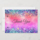 Tarjeta De Agradecimiento Monograma brillante de unicornio iridiscente chic