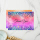Tarjeta de agradecimiento con monograma de unicornio iridiscente y glitter chic para chicas. Tarjeta de Navidad brillante y linda con purpurina. Perfecta para enviar a familiares o amigos durante la temporada navideña, cumpleaños o cualquier otra ocasión. Para hacerla aún más especial, está adornada con hermoso brillo falso. Este diseño también se puede transferir a cualquier producto en Zazzle. Puedes personalizarlo con tu propio texto e información.
