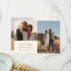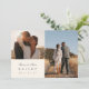 Las elegantes tarjetas planas de agradecimiento cuentan con un primer detalle de monograma con tres campos de texto personalizado; se muestra con "amor y gratitud", un campo de texto corporal para su mensaje personalizado, y sus nombres con letras negras en un fondo crudo de marfil. Añada un boda vertical o vertical favorito junto a él. Personalice la parte delantera con dos fotos adicionales.