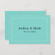 Las tarjetas de notas personalizadas de estilo plano cuentan con una moda y un diseño sofisticado y un monograma del nombre de matrimonio de una novia y un novio, con espacio en la parte posterior para un mensaje manuscrito. El esquema de color azul, negro y blanco del huevo de Aqua / robin.