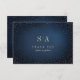 Tarjeta De Agradecimiento Monograma sofisticado de Purpurina de marina y oro