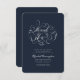 Este diseño sencillo y clásico se compone de tipografía de escritura serif y cursiva sobre un fondo azul simple.