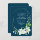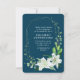 Este diseño está compuesto por flores y follaje sobre un fondo azul profundo.