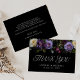 Moody floral boda de agradecimiento carta con un borde superior de marfil, morado y flores borgoñonas con frondosas hojas verdes y bayas oscuras. El elegante diseño floral púrpura se complementa con "gracias" que se muestra en la tipografía moderna. Personalice la tarjeta de agradecimiento del boda con sus nombres, fecha del boda y mensaje escrito a mano o con tipo. La tarjeta gótica floral de agradecimiento del boda es perfecta para tu otoño o boda de Halloween. Diseñado para coordinar con nuestra colección Moody Gothic Floral boda.