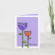 Un ilustracion o doodle original de dos flores, una morada y una naranja, contra una elección de color púrpura pálido, rajah naranja, o púrpura, naranja y verde polka dot backgrounds. Perfecto para una celebración alegre, divertida y boda.
