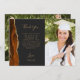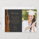 Envíe a su familia y amigos un agradecimiento especial por su graduación con estas tarjetas de fotos personalizados. A la izquierda, las palabras "gracias" aparecen en la elegante tipografía de escritura a mano de color dorado en un fondo negro sobre un breve y editable mensaje de agradecimiento a los invitados a la fiesta de graduación con letra de copperplate, con su nombre debajo. Una acuarela de color naranja quemada bordeada por un falso purpurina de oro decora el borde izquierdo. Añadir una foto vertical al frente y una segunda foto horizontal al fondo de la tarjeta.