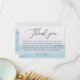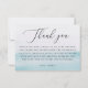An elegant baby shower thank you card featuring a large modern calligraphy “Thank you” with block text beneath. The soft blue watercolor ombre background gives the design a fresh and gentle feel, making it perfect for a baby boy, girl, or gender neutral shower. This minimalist design is versatile, fitting beautifully with various themes such as modern Scandinavian, nautical, coastal, or beach. This thank you card is the perfect choice for expressing your appreciation to guests for their gifts and support, while maintaining a stylish and refined look that will complement the overall ambiance of your baby shower.