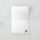 Un cielo azul con pequeñas estrellas. Un barco cohete azul con acentos rojos y verdes que despega hacia el espacio exterior. Una divertida tarjeta de agradecimiento.