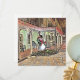 Escena gráfica con un muñeco de nieve frente a una casa de aspecto vintage