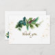 Elegantes Navidades Boda gracias tarjeta representa simples acuarelas ramas siempre verdes adornadas con hojas huecas, bayas rojas y salpicaduras de oro. La nota de agradecimiento interna puede ser personalizada o borrada para una nota escrita a mano. Buena elección para bodas de invierno y Navidades.*_