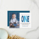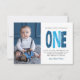 Moderno, simple y elegante chico primer cumpleaños tarjeta de agradecimiento. Diseño con guión de moda uno , mensaje de agradecimiento y foto.