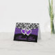 Esta tarjeta de agradecimiento de boda con patrón de damasco en negro y blanco con una cinta púrpura IMPRIMIR y un broche de corazones unidos con joyas de lentejuelas y diamantes FALSOS coincide con la invitación de boda que se muestra a continuación. El texto es personalizable. Todo se imprimirá como lo ve en su monitor. No veré su tarjeta, y Zazzle NO corregirá nada (errores tipográficos, desalineación, etc.). Si necesita otros artículos coincidentes, por favor envíe su solicitud a niteowlstudio@gmail.com.