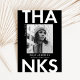 Tarjeta de agradecimiento moderna y de moda para graduación que incluye la foto del graduado con "Gracias" en negrita con letras blancas y fondo negro. Personalice la parte delantera de la tarjeta de agradecimiento de graduación fotográfica agregando el nombre del graduado, el nombre de la escuela y el año de graduación. En la parte posterior de la tarjeta de agradecimiento de la foto de graduación hay espacio para el mensaje escrito a mano o a tipeado con un patrón geométrico en blanco y negro.