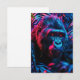 Representación digital de un gran gorila macho en una selva tropical con iluminación estilizada de neón.