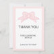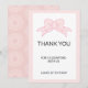 Muestre su aprecio con estilo con esta tarjeta de agradecimiento para el primer cumpleaños de la niña de lazo rosa. Con un dulce diseño de lazo rosa, cada tarjeta puede incluir el nombre de su hijo, lo que la convierte en una forma atenta y memorable de agradecer a los invitados por celebrar el día especial de su pequeña. Perfecta para fiestas de cumpleaños, acompañamientos de regalos o recuerdos.