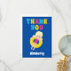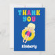 Tarjeta de agradecimiento para una fiesta increíble de niños en la piscina para una niña rubia en el equipo de natación durante el verano. Cuenta con un toque brillante y divertido de colores y una adorable niña nadando en un tubo interior.